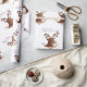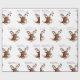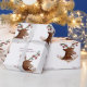 Hermoso dibujo acuarela de reno con adorables juguetes decorativos de año nuevo, Navidades, papel envolvente de Año Nuevo.