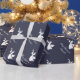 Navidades papel de envolver de ángel con nombre personalizado. Diseño de giftwrap personalizado con nombre personalizado y deseos de vacaciones, por ejemplo Feliz Navidad. Color de fondo azul personalizable. Tipografía de escritura elegante. Saludos personalizados de temporada. Silhouette de ángel de Navidad con alas y halo soplando una trompeta.