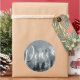 Navidades Pegatinas redondos Snow Tree Navy Watercolor para la decoración y el regalo de los navidades. Pintado con hermosos colores azules de invierno sobre blanco. ¡Festividad y belleza! Nieve de invierno maravillosa y azul marino. holidayz18