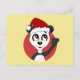 Postal con ilustracion de la cabeza de un lindo oso panda con el gorra de Santa; gran decoración para las vacaciones de los Navidades, ilustrada por Radka Kavalcova