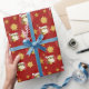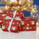 Navidades envolver papel con un ilustracion de un león lindo con gorro de Santa roja; gran decoración para las vacaciones de Navidades, diseño de plantilla editable con campo personalizado para tu propio texto, ilustrado por Radka Kavalcova