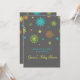 Vacaciones de invierno personalizadas invitaciones para bebés en adorables y modernos verde azulados turquesa azul turquesa, amarillo, naranja, verde y gris festividad y coloridos copos de nieve. Personalizable con tu texto, contáctanos para solicitar un cambio de color.