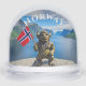 Celebre la magia de las vacaciones con este diseño de globo nevado de inspiración noruega. Presenta un agradable troll que sostiene la bandera del país, con letras de "Noruega" y un fiordo escénico en el fondo, y captura el espíritu del folclore nórdico y la belleza del invierno. En la parte trasera hay un efecto de madera con "Feliz Navidad" y espacio para un mensaje personalizado, lo que lo convierte en un placer festivo y personal. Llena de encanto festivo, la decoración es perfecta para coleccionistas, viajeros y todos los amantes de la cultura escandinava.