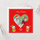Pequeña y moderna foto de pareja de personalizados dentro del corazón y lindos elfos en la tarjeta de felicitación de Navidades rojos. Texto listo para ser personalizado. La foto se puede personalizar,