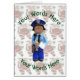 Esta tarjeta de Navidades personalizados está decorada de un lado con una agente de policía de juguetes blancos. El reverso está decorado con una imagen de Santa Claus llevando su bolsa de mercancía, y se puede personalizar con nombres, fechas, etc.