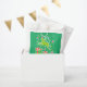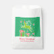 Un reno divertido en la nieve agrega tu propio texto o nombre Navidades fiesta gracias bolsa de regalo en tonos rojos, verdes y blancos. Perfecto para tus Navidades. Audaz diseño divertido con reno saltando sobre regalos en caja en colores festivos. Personalice con su saludo y apellido, actualmente lee Feliz Navidades de la familia Dickens.