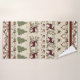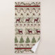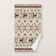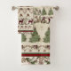 "Lodge Christmas Tree Merry Bright Deer Antlers Bath Toalla Set." El arte de palabras inspirador y emocional llena los árboles de Navidad del bosque. Fondo rústico de madera rubia con capas a rayas de Navidades y elementos de temática invernal: antorchas de venado con ornamentos y estrellas, arcos con conos de pino y follaje de helecho, siluetas de ciervo con mantas de protección de búfalo rojas y negras, ornamentos y texto de escritura tipográfica, "Merry y Brillante". Todo el arte fue creado por la artista y diseñadora con licencia internacional Audrey Jeanne Roberts, copyright.