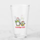 Un pequeño pingüino personalizado con bola de nieve y uno desmayado. Ambos llevan pañuelos verdes y sombreros de santa.