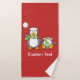 Un pequeño pingüino personalizado con bola de nieve y uno desmayado. Ambos llevan pañuelos verdes y sombreros de santa.