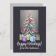 Resumen, brillantes Navidades de vidrio pino, "Felices Fiestas", editable, tarjeta de Navidades, descarga digital, creada con ayuda de IA.