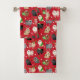 Perros de Navidades muy amables vestidos con ropa festiva. Pomerania con abrigos crema, negro, tostados, gris y chocolate llevan sombreros de Santa Claus, cuernos, sudaderas sobre un fondo rojo con toallas de baño de adornos dispersos.