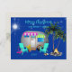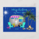 Camping temática, Navidades saludos con postales. Un camper plateado es el diseño de postales fáciles de personalizar. Las palmeras están decoradas con luces y dos sillas azul turquesa están colocadas junto a la fogata, mientras que las estrellas brillan en el cielo. Los flamencos y una concha de mar completan el diseño tropical. Incluya una dirección postal en la parte posterior si lo desea. Cada postal tendrá que ser personalizada por separado para las direcciones. Una vez que se haya agregado una tarjeta a su carrito, haga clic en ella para volver a la página del producto y personalizar la siguiente.