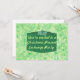 En las invitaciones de los personalizados se imprimen cuadros de un presente verde coronado por un arco rayado verde y blanco, sobre un fondo abstracto con motivos de amarillo, verde y blanco. El texto se puede personalizar fácilmente para un fiesta de intercambio de regalo de Navidad, y también se puede personalizar de forma diferente, o borrar.