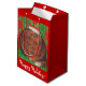 Un feliz gato de los tortoiscones (¡que se parece a un pudín de navidades!) se sienta en un cojín verde contra un fondo rojo y verde con motivos en hojas huecas. Bolsa de regalo con un diseño de personalizable rojo, verde, marrón y blanco para que usted pueda personalizar con su propio texto, imágenes e ideas.
