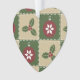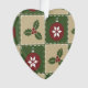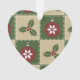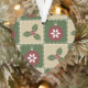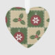 Cuatro plazas de color verde y marrón están adornadas con adornos rojos adornados con copos de nieve blancos y verde y con bayas rojas. El punzonado blanco aporta un toque decorativo, dando a la tónica repetida la apariencia de una colcha, creando un ambiente muy acogedor para las vacaciones de los Navidades.