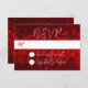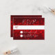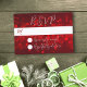 fiesta de navidades o tarjetas RSVP de boda de diciembre. Compra tarjetas impresas, o como descarga, o ambas. Un brillante fondo rojo con un panel blanco para el nombre y los nombres de los invitados, y espacios blancos para seleccionar "aceptar gentilmente" o "declinar lamentablemente". El texto es personalizable y en un guión elegante y moderno. El diseño festivo está en ambos lados.