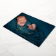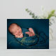 Una elegante tarjeta de anuncio de natalidad de vacaciones con tu foto favorita cubierta con "cuanto más alegre! " en el tipo de letra de caligrafía de Relieve metalizado oro real. Puede agregar un mensaje opcional al reverso.