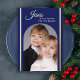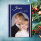 Esta hermosa foto de una tarjeta plana de Navidades cristianos muestra una foto de tu familia dentro de un arco flanqueado con una franja de Relieve metalizado dorado en ambos lados. Las palabras "Jesús es la razón de la temporada" aparecen encima de la foto en Relieve metalizado de oro. Además, el nombre de su familia aparece en un guión de Relieve metalizado dorado. Una tarjeta de bienvenida religiosa moderna para la temporada de Navidades. Copyright Henis House of Paper