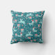 Una almohada de estampado gráfico con adornos de Navidades adornados con orfebrería de renos y pájaros cantantes con regalos. Una divertida almohada de vacaciones en cálidos tonos verde azulados rojos, blancos y azul acuático. Se vería bien en un salón o añadir un poco de color Navidad a cualquier habitación.