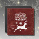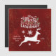 Esta tarjeta magnética de saludo de Navidad puede ser personalizada con su nombre comercial o personal y fecha. El diseño de la tipografía de estilo nórdico presenta ciervos y copos de nieve sobre un fondo rojo borgoña y moteado de oro. La tipografía de texto dice "Feliz Navidad".