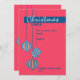 Tres adornos navideños de estilo retro naranja y azul, ligeramente compensados con un fondo rojo brillante, un aspecto dulce y diferente para las celebraciones de los Navidades.