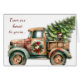 En la parte delantera de esta bonita tarjeta de saludo de vacaciones, un camión de granja de estilo retro está decorado con una corona de Navidades y lleva a casa un árbol verde recién cortado. Un perro de ganado australiano usa un sombrero de Santa Cruz rojo y blanco y se asoma por la parte de atrás del camión. El texto rojo de un lado dice "De nuestra casa a la tuya...", y el sentimiento continúa dentro. Todo el texto, frontal e interior, puede ser fácilmente personalizado por usted para decir lo que le gustaría.