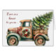 En la parte delantera de esta bonita tarjeta de saludo de vacaciones, un camión de granja de estilo retro está decorado con una corona de Navidades y lleva a casa un árbol verde recién cortado. Un perro pastor alemán sale de la parte de atrás del camión. El texto rojo de un lado dice "De nuestra casa a la tuya...", y el sentimiento continúa dentro. Todo el texto, frontal e interior, puede ser fácilmente personalizado por usted para decir lo que le gustaría.