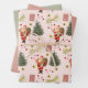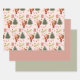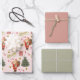 Retro Santa Navidades rosados y sabios Envuelven hojas de papel de 3 juegos