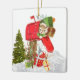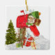 Este querido gatito vintage te está entregando una tarjeta de vacaciones. Se muestra un gatito en un buzón, con regalos de vacaciones en la base y nieve blanca. Compra este ornamento como regalo para esa persona especial o cómprate para tu árbol de Navidad. Puedes personalizar el reverso con tu propio saludo.