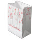 ¡Esta bolsa de regalo de vacaciones de bonito está lista para la temporada de dádivas! La decoración es de tonos rojos y blancos y Navidad. El lado derecho tiene un texto rojo que dice Felices Fiestas. Ambos lados de la bolsa tienen la misma imagen.