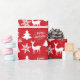 Navidades rojos y blancos envolviendo papel de regalo navideño con renos en prandillo, árboles de Navidad, copos de nieve y saludos navideños de Feliz Navidad para un divertido patrón de vacaciones de invierno. Este lindo papel de envoltura de Navidad es genial para todo tipo de regalos y regalos.