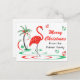 Un diseño divertido, festivo y flamingo con un toque retro en rojo y verde. Un flamenco rojo se adentra en el agua, al lado de una palmera decorada con Navidades de baubles y cinta adhesiva. Un diseño de personalizable para que puedas personalizar con tu propio texto, imágenes e ideas. Imagen original de arte digital creada por Jess Perry.