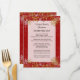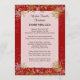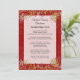 Plantilla de menú Navidades rojos y dorados. Rojo oscuro con bordes dorados de copos de nieve en la parte superior e inferior. Incluya el nombre de la familia y la fecha en la parte superior y, a continuación, indique toda la comida planeada para una celebración de vacaciones. Incluya el nombre del cocinero/chef para cada artículo para un efecto más personalizado.
