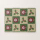 Cuatro plazas de color verde y marrón están adornadas con adornos rojos adornados con copos de nieve blancos y verde y con bayas rojas. El punzonado blanco aporta un toque decorativo, dando a la tónica repetida la apariencia de una colcha, creando un ambiente muy acogedor para las vacaciones de los Navidades.