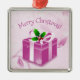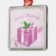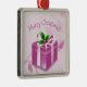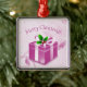 Añada un toque caprichoso a su árbol de Navidad esta temporada navideña con un adorno de cerámica de regalo de Navidades rosados. El diseño ornamental incluye un regalo vibrante de Navidades rosados adornado con bayas y copos de nieve cayendo contra un desplazamiento elegante y hojas de fondo. También hay artículos de regalo y de vacaciones disponibles con este diseño.