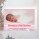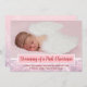 Celebra la primera Navidad de un bebé con esta festividad Dreaming of a Pink Navidades Snowflake Baby Photo First Christmas Holiday Card! Todo el texto se puede cambiar, incluido el título! Puede reemplazar la foto de muestra por la suya propia. El diseño presenta un caprichoso fondo de copo de nieve de invierno con letras rojas oscuras.