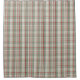 Navidades rústicos colocan una cortina de ducha con motivos de colores apagados, salvia, crema y rojo.