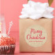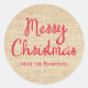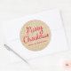 Modernos Navidades rústicos personalizados regalan pegatinas con las palabras Feliz Navidad en rojo en un elegante fondo de burpón impreso. Añade tu nombre para un toque personalizado en los productos horneados, los favores de fiesta y los regalos.