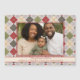 Tarjeta de imán fotográfica de vacaciones rojas de Navidades rusos con estilo de argyle cálido y acogedor, con su foto y texto personalizado.