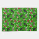 Los Navidades sabrosos Schnauzers con sal y pimienta, y los abrigos negros y plateados llevan sombreros de Santa, corderos y sudaderas de argyle sobre un fondo verde con adornos dispersos.