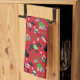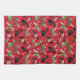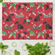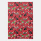 Los Navidades sabrosos Schnauzers con sal y pimienta, y los abrigos negros y plateados llevan sombreros de Santa, corderos y sudaderas de argyle sobre un fondo rojo con adornos dispersos.
