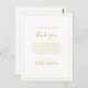 Navidades simples | tarjeta blanca de recepción de agradecimiento es perfecta para su minimalista boda de invierno. La caligrafía clásica de lujo dorado, junto con el fondo blanco tradicional, bordeada por un marco mínimo, completan el ambiente colorido de las vacaciones que buscas. Puedes personalizar con tus propias fotos o gráficos o mantenerlo tal cual. ¡Asegúrate de mirar el resto de la colección para completar tu tema boda!