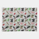 Perros chiitas Navidades con colores negros, blancos, grises, dorados y máscaras, vestidos con trajes festivos, sombreros de Papá Noel y sudaderas de estilo argyle con adornos navideños dispersos.