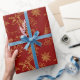 Navidades venados, árboles y follaje, tonos dorados Navidades símbolos en un patrón sin fisuras. Fondo de color de árbol rojo, azul y verde. Todos los colores de fondo son cambiables.
