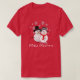 Esta camiseta unisex es perfecta para reunirse en familia y para vestirse durante toda la temporada de Navidades. Mostrado en rojo cardenal con un muñeco de nieve y diseño de copos de nieve. Personaliza el texto con tus propias palabras o compra como se muestra con "Feliz Navidad"