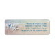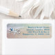 Etiqueta de la dirección de retorno para los que viven cerca de la playa. Diseño Starfish y ornamentos con dirección impresa azul oscuro y espacio suficiente para añadir 4 líneas si fuera necesario. Las olas que llegan a la orilla son la imagen de fondo de estas etiquetas delgadas.