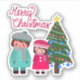 Una pareja con un árbol de Navidad te está deseando una Feliz Navidad.