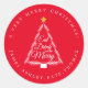 Moda, Navidades rojos modernos sello para sobres con el texto festivo "Come Beat" y sé Feliz en una elegante caligrafía de escritura en un elegante árbol de Navidad con una estrella dorada. Simplemente agregue sus deseos personales de vacaciones y su nombre familiar. Excelente para favores de fiesta, dulces caseros, hacer regalos, o agregar a tu correspondencia de vacaciones. Si necesita ayuda o productos coincidentes, por favor contáctenos en happydolphinstudio@outlook.com. Diseñado exclusivamente para usted por Happy Dolphin Studio.