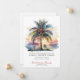 Esta cédula de invitación para Navidades tropicales que se mudan cuenta con una palmera adornada con adornos de Navidades. La tarjeta es perfecta para enviar a amigos y familiares durante la temporada de vacaciones para que sepan de su nueva dirección, al tiempo que incorporan su amor por los trópicos. La parte delantera de la tarjeta muestra el árbol de Navidad con conchas de playa y el dicho "Saludos de Navidad desde nuestro nuevo hogar dulce hogar" El diseño general es festivo y único, y la tarjeta seguramente pondrá una sonrisa en los rostros de sus seres queridos.
