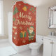Este diseño de cortinas de ducha cuenta con un Navidad tradicional con encanto juguetón y calidez festiva. Los colores son un fondo rojo vibrante, la tipografía y copos de nieve blanco roto, acentos verdes y dorados, toques de color beige y Santa alegre de color rojo. Tiene un texto central de "Feliz Navidad" en un guión elegante, decorado con un árbol de Navidad con adornos y estrellas, campana dorada con arco verde, estribillo lleno de bayas rojas, Santa Claus ondeando con ropa de fiesta completa. Tiene un caldo rojo, un adorno verde y una caja de regalo envuelta, copos de nieve blancos dispersos y puntos para el efecto de la nevada. Está destinado a los amantes de las vacaciones, a los compradores de boutique y a todo aquel que desee agregar un toque alegre y tradicional de Navidad a su decoración. Perfecto para las familias, los regalos y los decoradores de temporada que adoran los diseños atrevidos y alegres.